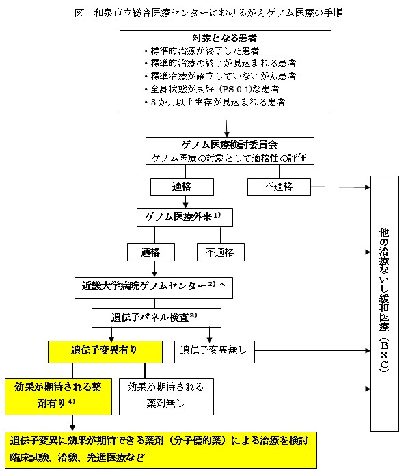和泉市立総合医療センターは、現時点でこれらの”がんゲノム医療関連病院”には指定されていませんが、がんゲノム医療の必要な患者さん、あるいはがんゲノム医療を希望される患者さんには、適切に対応できるよう体制を整えております。