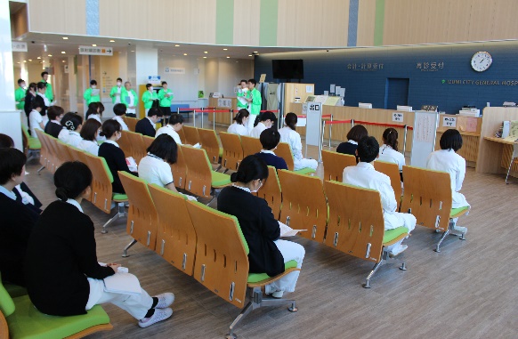 2018年4月の新築移転以来、消防訓練などは行っていたが災害訓練は初めて実施でした。 2018年、台風や地震など自然災害が続いた事もあり、職員の危機管理に対する意識・スキルの向上を目指しました。 医師・看護師・その他各部署から59名の職員が参加しました。