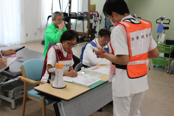 訓練は地震が発生し多数の傷病者が出たというケースを想定。 村上院長が指揮を執り災害本部の設置を行いました。
