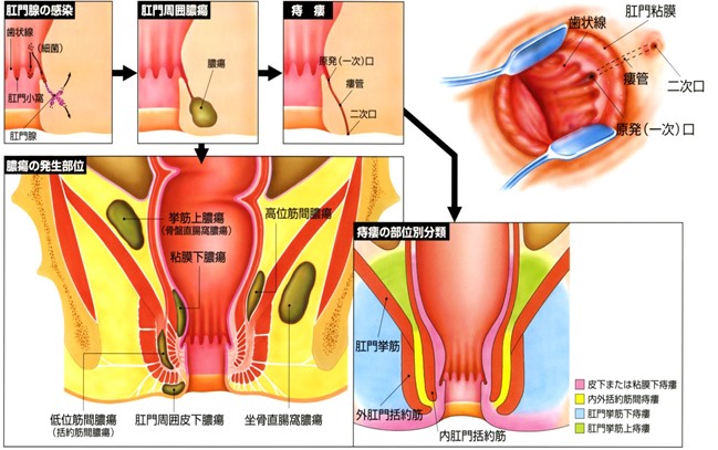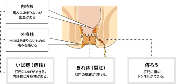 痔疾(いぼ痔・切れ痔・痔瘻)、直腸脱