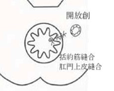 慢性化・潰瘍化した裂肛を切除し、瘢痕肥厚した組織を削ることで直りやすい創にします。 すぐ外側の皮膚を移動して創部を縫合します(皮膚弁移動術) 裂肛の患者さんは肛門の緊張が強くなっているため、必要に応じて内肛門括約筋を一部切開します(皮下内肛門括約筋切開)。