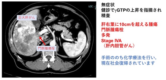 3)臨床的根治切除不能:肝内転移/リンパ節転移の双方が認められる場合 もしくは遠隔転移(領域外リンパ節含む)が認められる場合には化学療法後に手術適応を再検討しています。